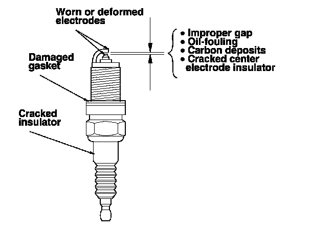 1. Remove the spark plugs, then inspect the electrodes and the ceramic insulator.