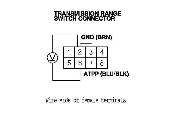 24. Measure the voltage between transmission range switch connector terminals No. 2 and No. 6.