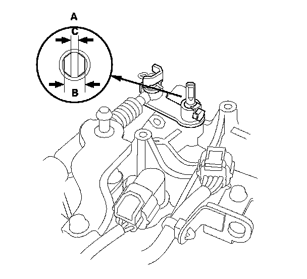 5. Remove the transmission range switch, and check the end of the selector control shaft (A).