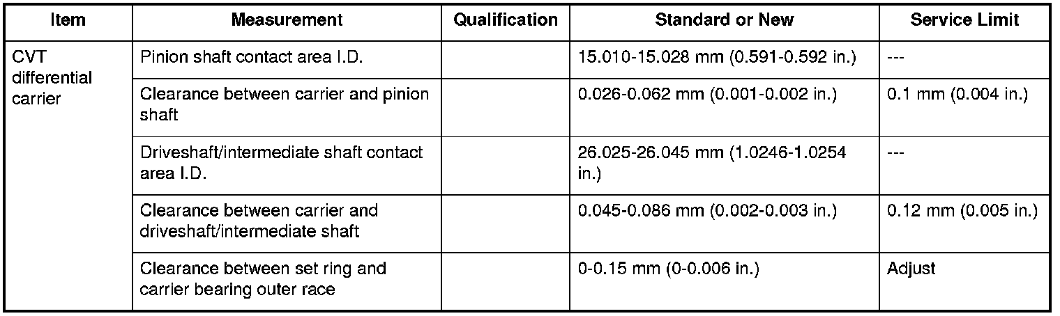 CVT Differential Carrier Specifications