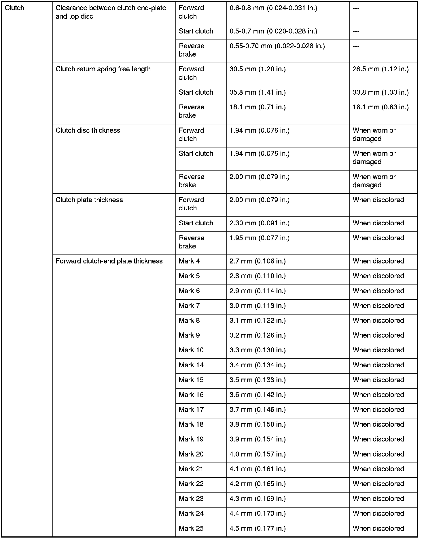 Clutch Specifications