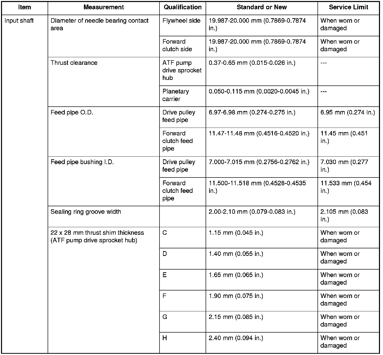 Input Shaft Specifications