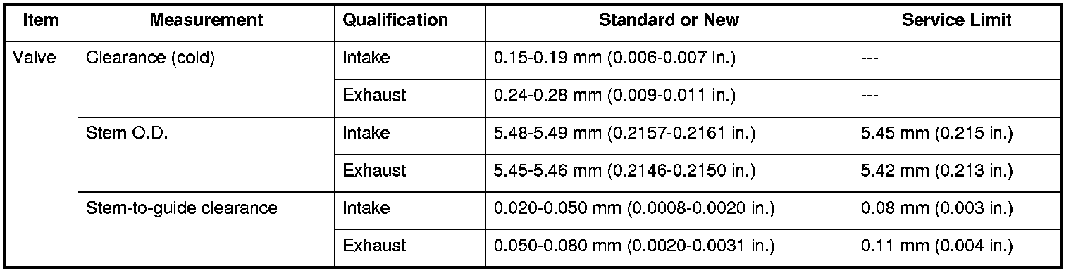Valve Specifications