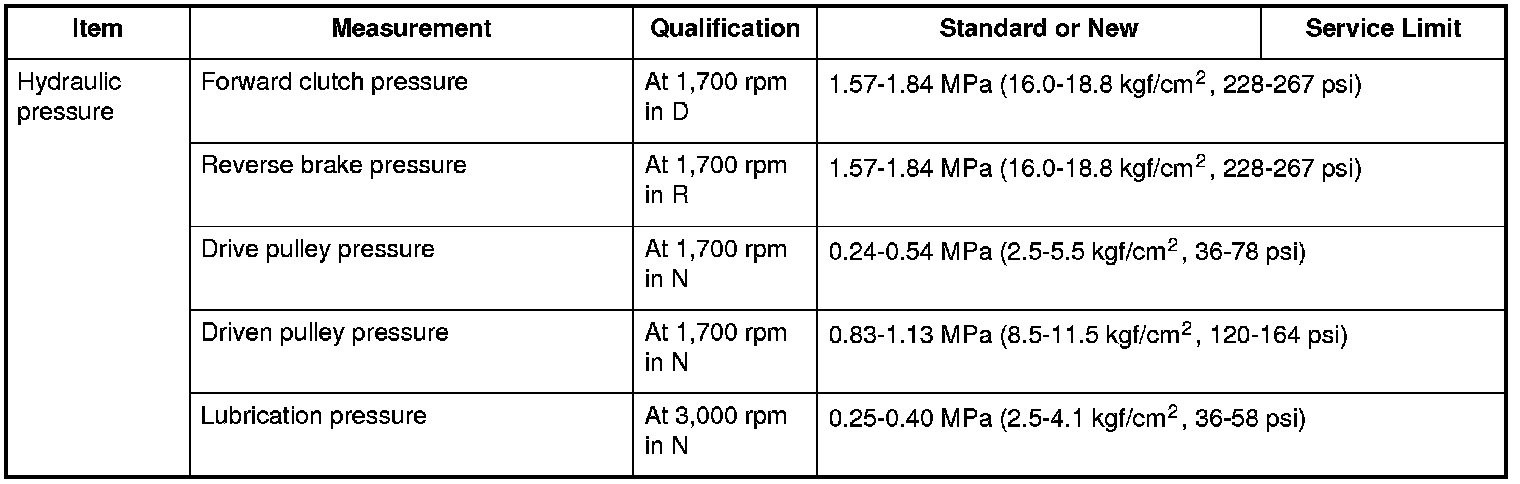 Hydraulic pressure Specifications