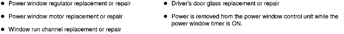 13. Confirm that the power window control unit is reset by using the driver's window AUTO UP and AUTO DOWN functions.