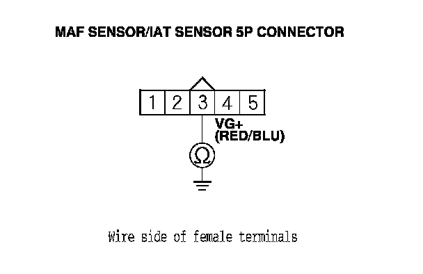 7. Measure the voltage between MAF sensor/IAT sensor 5P connector terminal No. 5 and body ground.
