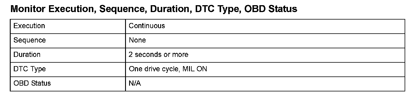 Monitor Execution, Sequence, Duration, DTC Type, OBD Status