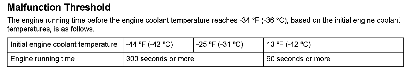 When a malfunction is detected during the first drive cycle with the ECT and IAT at engine start-up within the specified temperature range, a Temporary DTC is stored in the PCM memory. If the malfunction recurs during the next (second) drive cycle with the ECT and IAT at engine start-up within the specified temperature range, the MIL comes on and the DTC and the freeze frame data are stored.