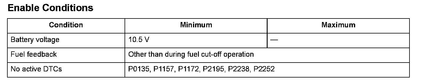- The A/F sensor internal resistance value is 70 Ohms or more for at least 15 seconds.