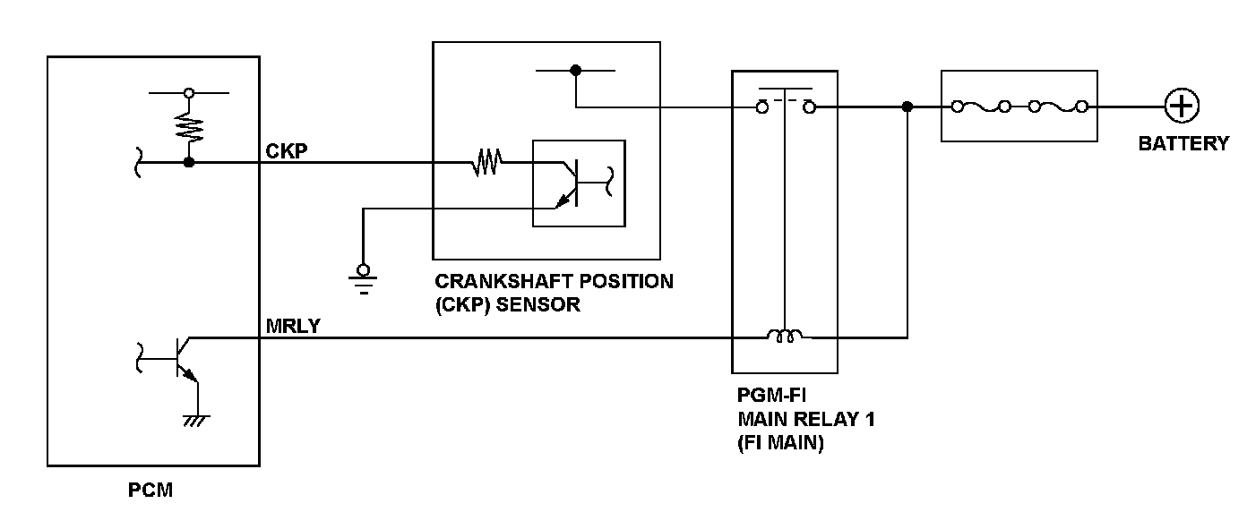 Crankshaft position (CKP) sensor consists of a rotor and a semiconductor that detects rotor position. When the engine starts, the rotor turns and the magnetic flux in the semiconductor device changes. The changes of magnetic flux are converted into pulsing signals to the powertrain control module (PCM). The CKP sensor detects injection/ignition timing for each cylinder and engine speed.