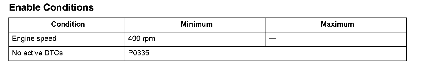 If an abnormal amount of pulsing signals from the CKP sensor are detected, a malfunction is detected and a DTC is stored.