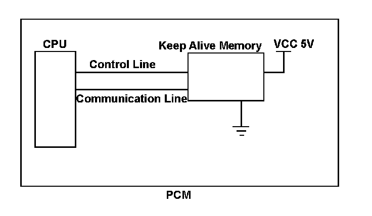 The powertrain control module (PCM) is equipped with a keep alive memory. The data (control learn data, etc.) for powertrain control and information (vehicle identification number (VIN), etc.) related to vehicle control is stored in the keep alive memory, so that it can be maintained even when power is not supplied to the PCM, such as when the battery is disconnected. When power is restored to the PCM, the CPU retrieves the stored information from the keep alive memory, but when the data retrieval process is not finished normally, a malfunction is detected and a DTC is stored. The CPU writes data to the keep alive memory from the CPU: Control related data is written when the ignition switch is turned to ON (II), and vehicle information when commanded from the HDS. If the data writing process is not completed normally, a malfunction is detected and a DTC is stored.