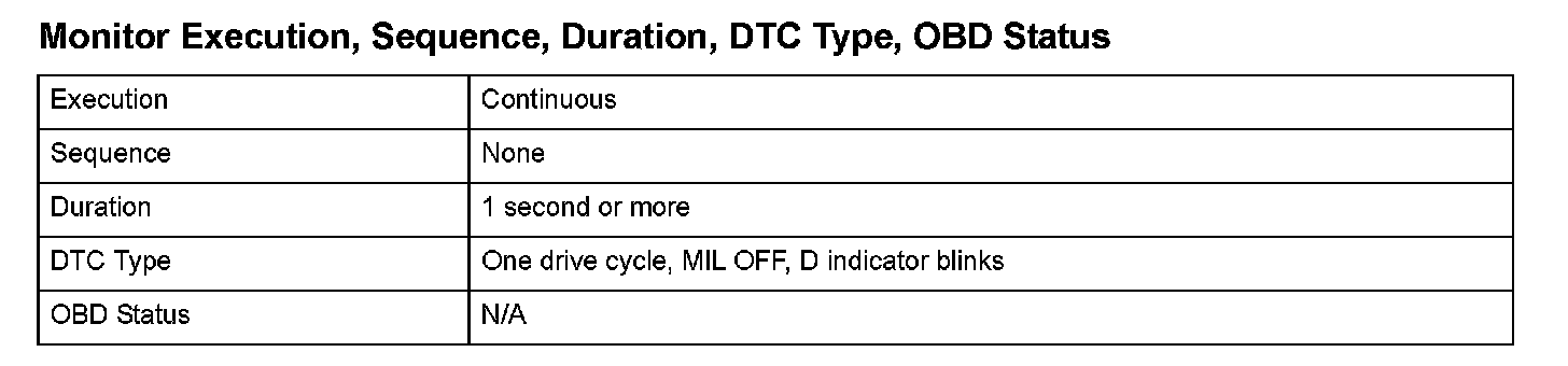 Monitor Execution, Sequence, Duration, DTC Type, OBD Status