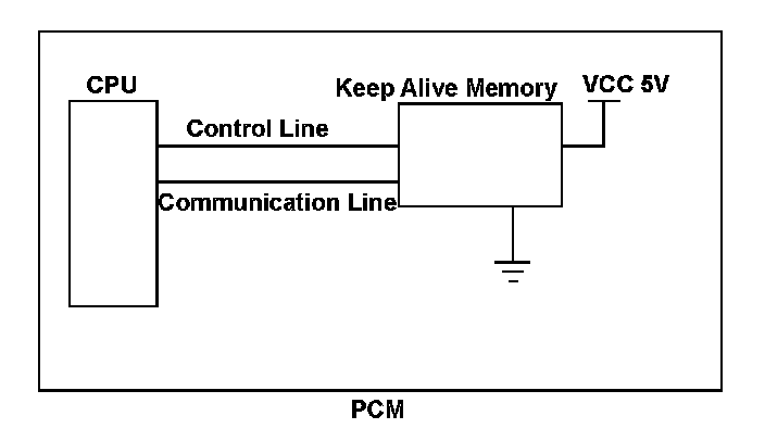 The powertrain control module (PCM) is equipped with a keep-alive memory. The data (control learn data, etc.) for powertrain control and information (vehicle identification number (VIN), etc.) related to vehicle control is stored in the keep alive memory, so that it can be maintained even when power is not supplied to the PCM, such as when the battery is disconnected. When power is restored to the PCM, the CPU retrieves the stored information from the keep-alive memory, but when the data retrieval process is not finished normally, a malfunction is detected and a DTC is stored. The CPU writes data to the keep- alive memory from the CPU: Control related data is written when the ignition switch is turned to ON (II), and vehicle information when commanded from the HDS. If the data writing process is not completed normally, a malfunction is detected and a DTC is stored.