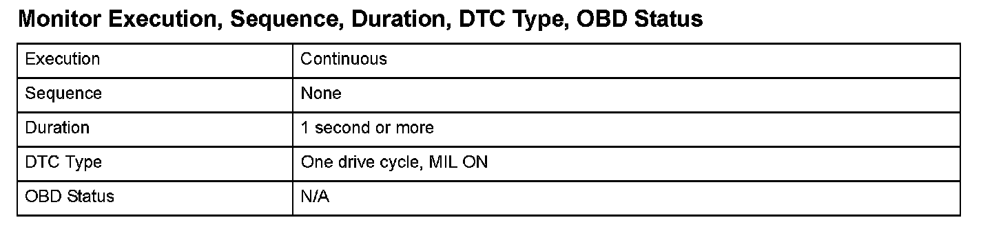 Monitor Execution, Sequence, Duration, DTC Type, OBD Status