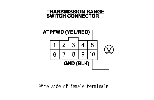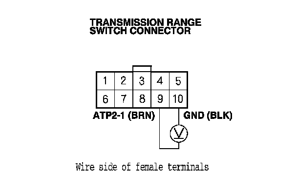 20. Measure the voltage between transmission range switch connector terminals No. 5 and No. 10.
