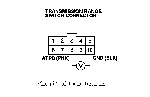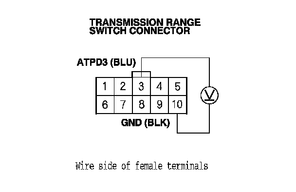 22. Measure the voltage between transmission range switch connector terminals No. 3 and No. 10.
