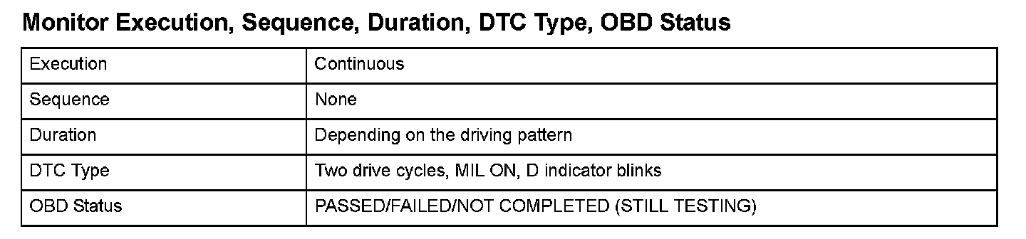 Monitor Execution, Sequence, Duration, DTC Type, OBD Status