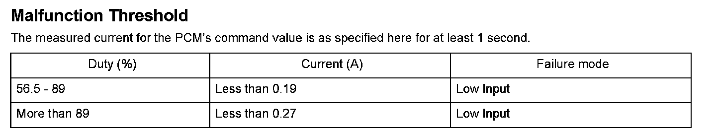 A/T clutch pressure control solenoid valve C is used for clutch pressure control. A spool in A/T clutch pressure control solenoid valve C pushes a valve according to the duty cycle that is controlled by the powertrain control module (PCM) to pressurize fluid so the hydraulic pressure is proportional to the current. The PCM measures the current flowing through A/T clutch pressure control solenoid valve C and uses feedback control to compensate for the difference between the actual current and the commanded one. If the measured current for the PCM output duty cycle is not within a specified range (open or short), a malfunction is detected and a DTC is stored.