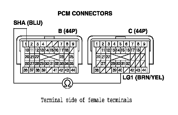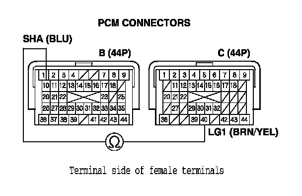 10. Disconnect PCM connectors B (44P) and C (44P).