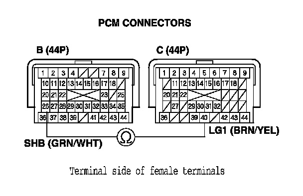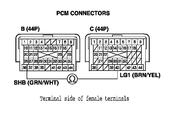 10. Disconnect PCM connectors B (44P) and C (44P).