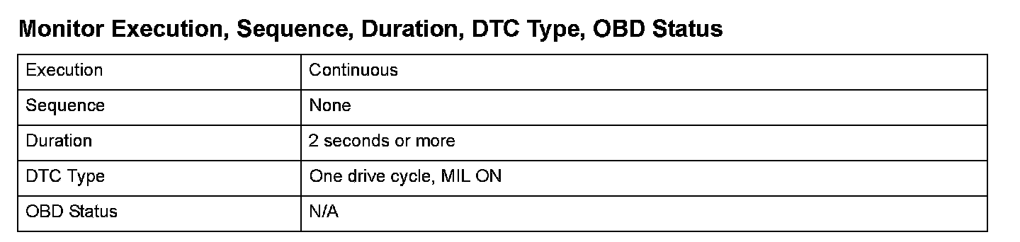 Monitor Execution, Sequence, Duration, DTC Type, OBD Status