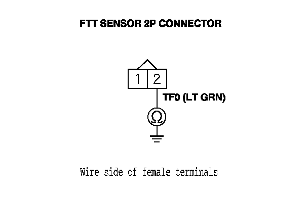 10. Check for continuity between FTT sensor 2P connector terminal No. 2 and body ground.