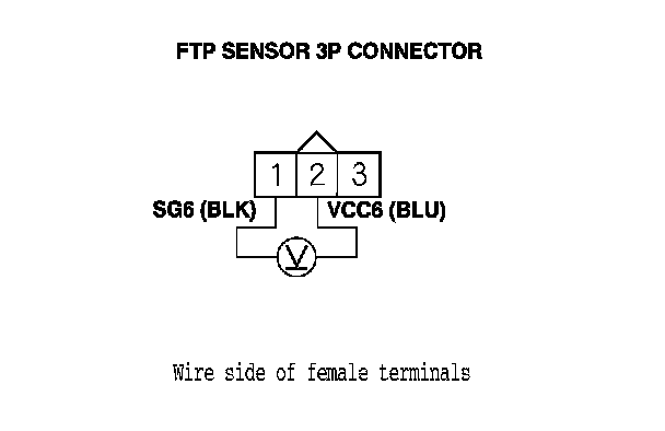 7. Measure the voltage between FTP sensor 3P connector terminals No. 1 and No. 2.