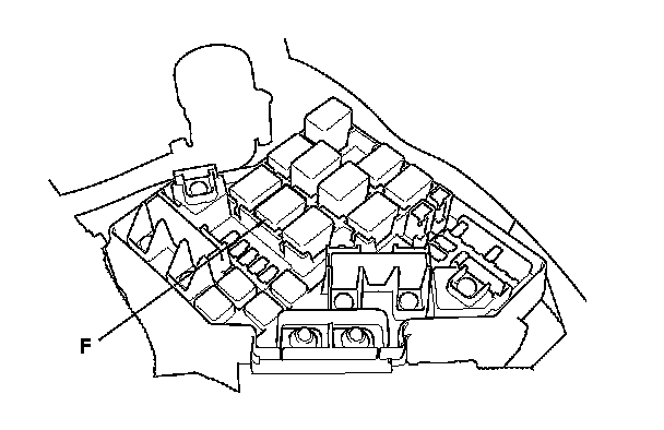 17. Remove the ETCS control relay (F) from the under-hood fuse/relay box.