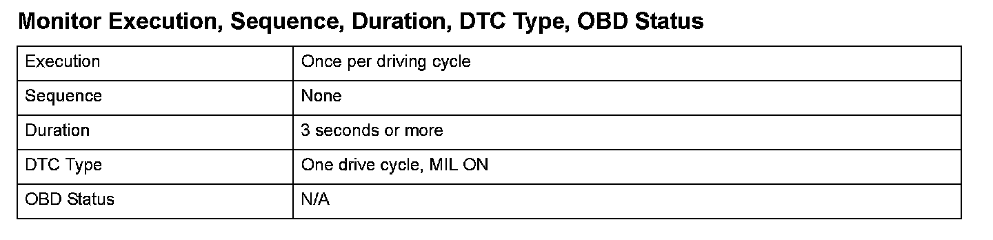 Monitor Execution, Sequence, Duration, DTC Type, OBD Status