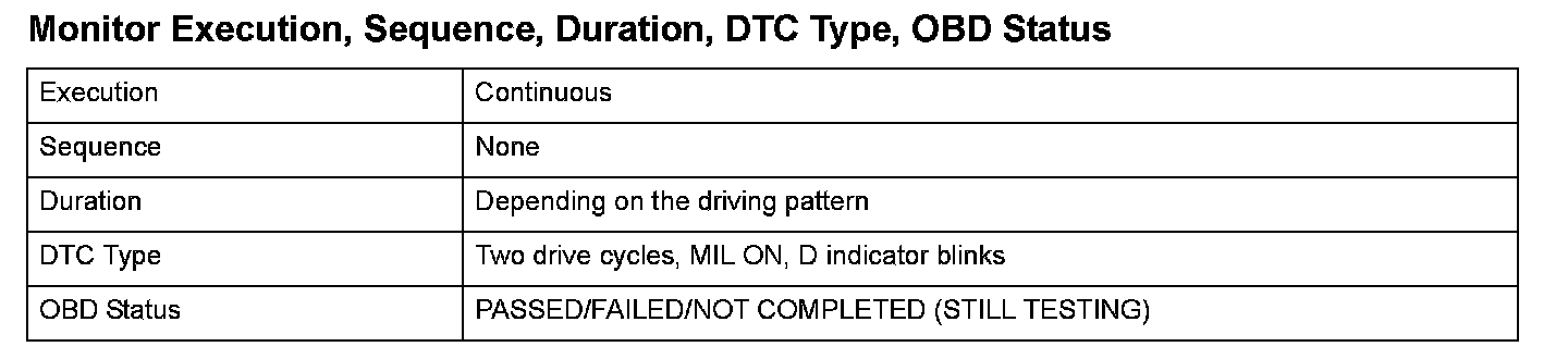 Monitor Execution, Sequence, Duration, DTC Type, OBD Status