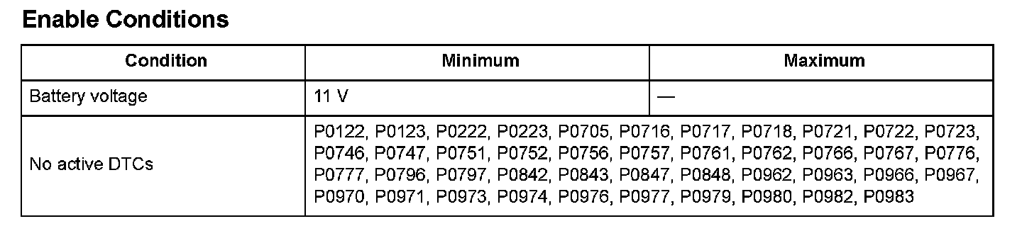 When the powertrain control module (PCM) detects a mechanical malfunction in the automatic transmission, the transmission switches to a default mode according to the malfunction, and this DTC is stored.