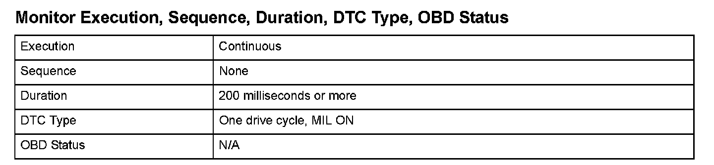 Monitor Execution, Sequence, Duration, DTC Type, OBD Status