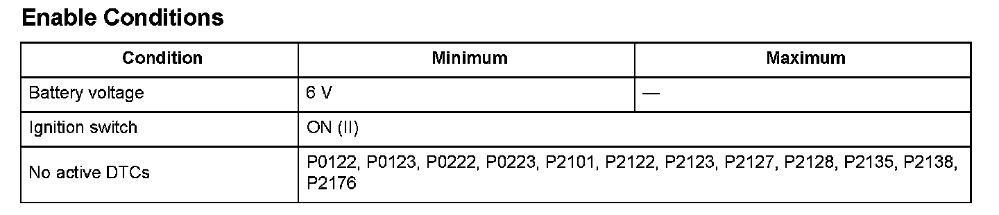 The current flow to the throttle actuator is 11 A or more for at least 200 milliseconds.