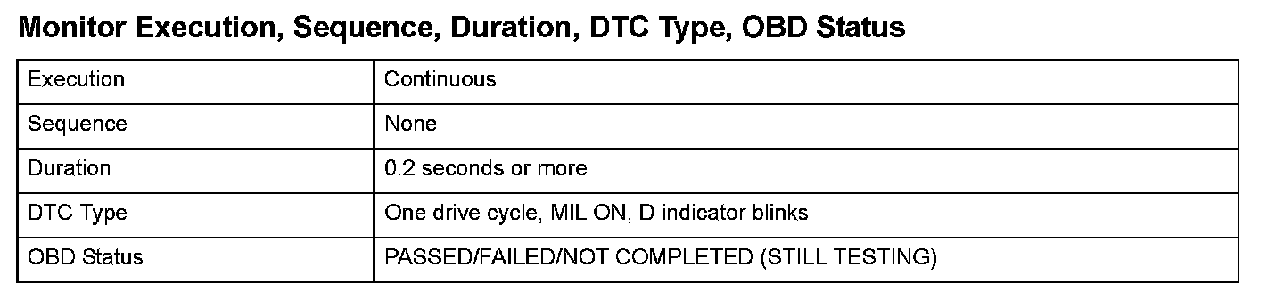 Monitor Execution, Sequence, Duration, DTC Type, OBD Status