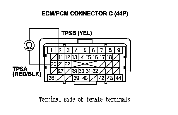 YES - Repair short in the wire between the ECM/PCM connector terminals C20 (TPSA line) and C21 (TPSB line), then go to step 17.