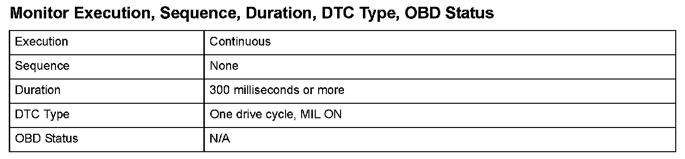 Monitor Execution, Sequence, Duration, DTC Type, OBD Status