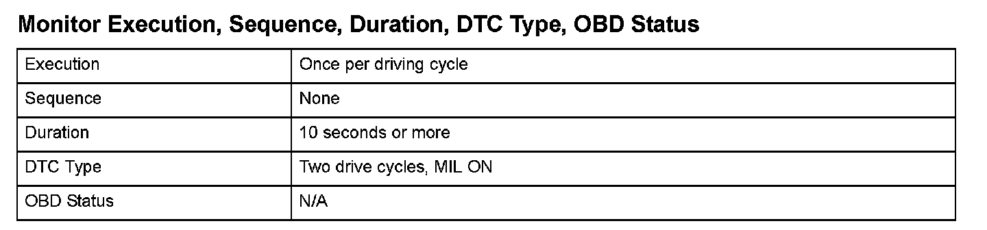 Monitor Execution, Sequence, Duration, DTC Type, OBD Status