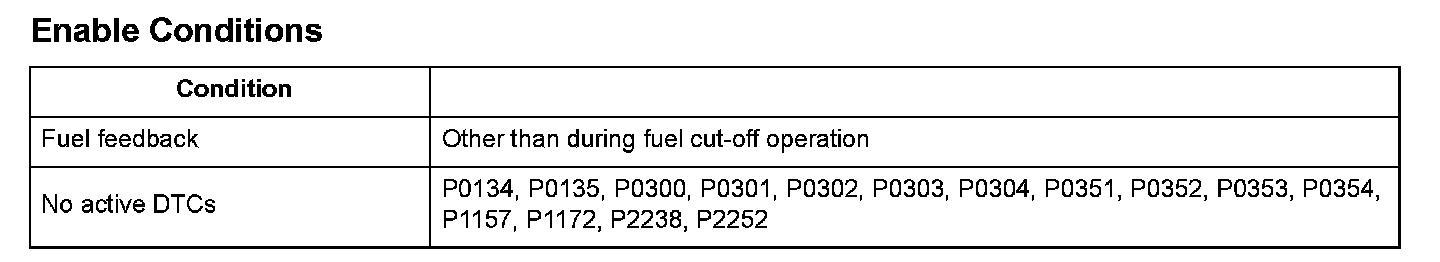 When the A/F sensor output stays out of the normal range after the A/F sensor becomes active, the powertrain control module (PCM) detects that the A/F sensor is not properly installed and a DTC is stored.