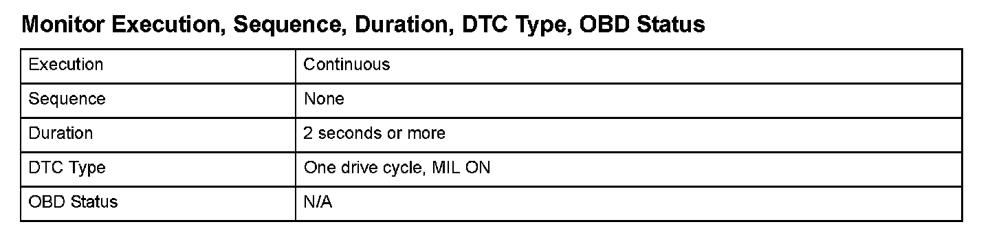 Monitor Execution, Sequence, Duration, DTC Type, OBD Status