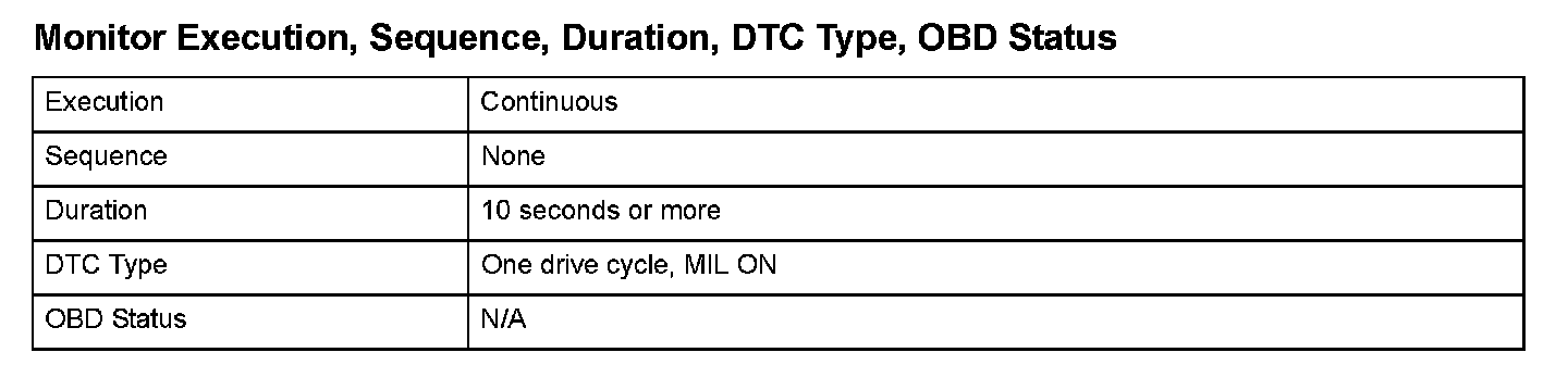 Monitor Execution, Sequence, Duration, DTC Type, OBD Status