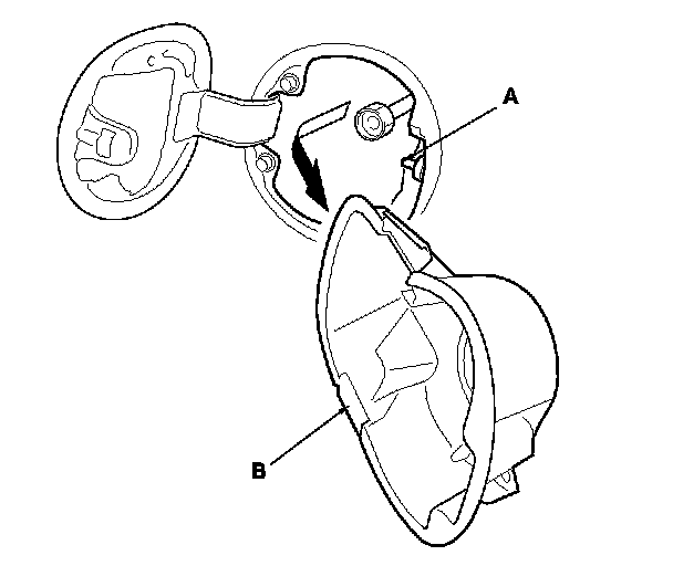 2. Remove the fuel fill door switch (A) by turning it 90 ° from the fuel receptacle adapter (B).