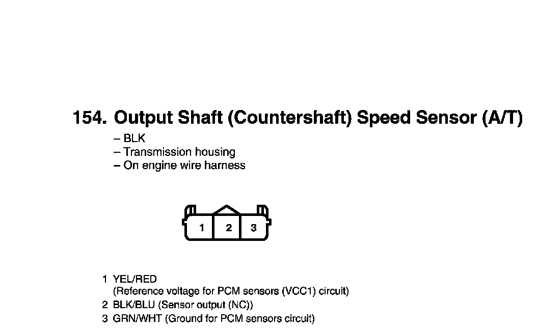View 154 Output Shaft (Countershaft) Speed Sensor Connector View (A/T)