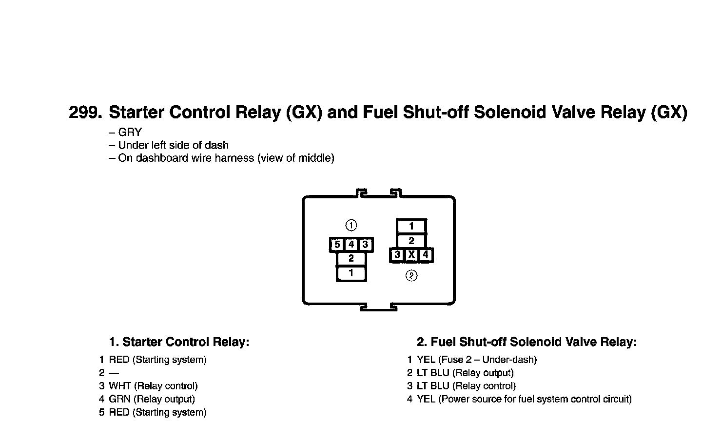 View 299 Starter Control Relay and Fuel Shut-Off Solenoid Valve Relay Connector View