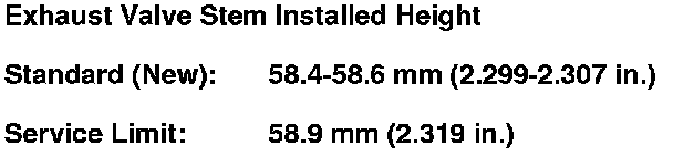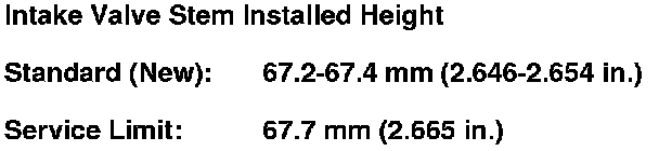 9. If the valve stem installed height is beyond the service limit, replace the valve and recheck. If it is still beyond the service limit, replace the cylinder head; the valve seat in the head is too deep.