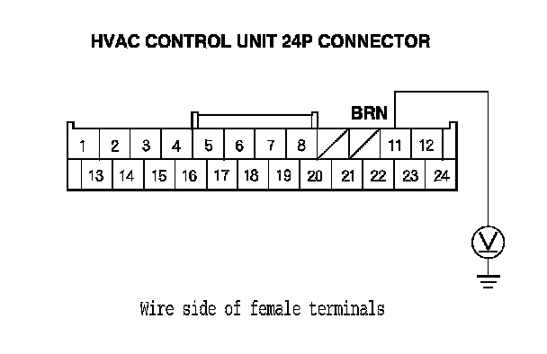 4. Measure the voltage between the HVAC control unit 24P connector terminal No. 11 and body ground.