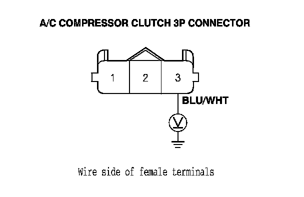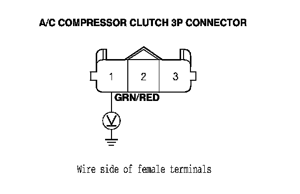 K20Z3 engine: Measure the voltage between the A/C compressor clutch 3P connector terminal No. 1 and body ground.