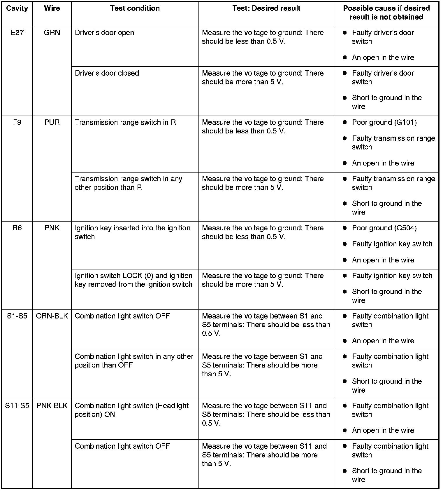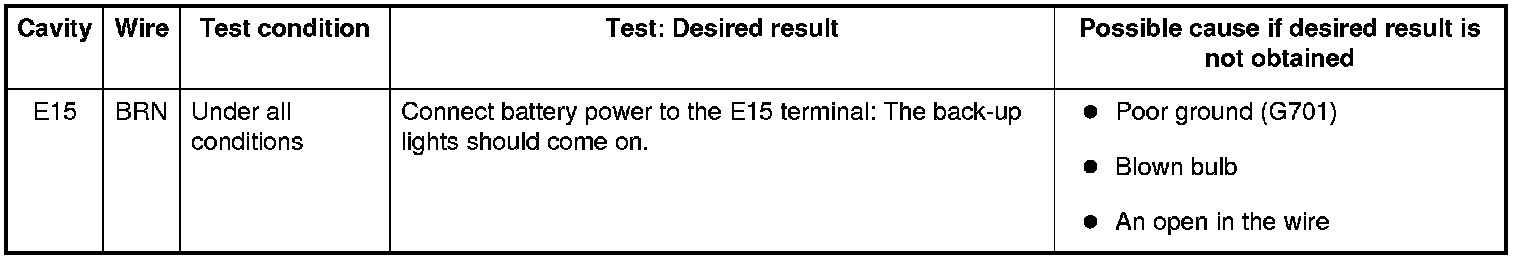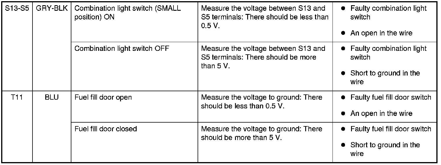 6. Reconnect the connector to the under-dash fuse/relay box, and do these input tests at the following connectors.