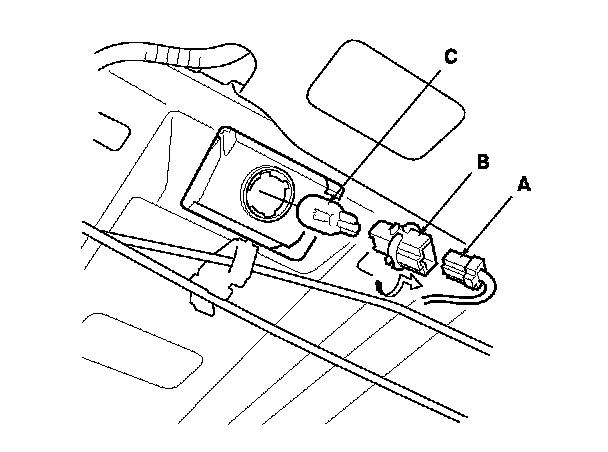 3. Turn the bulb socket (B) 45 ° counterclockwise to remove the bulb (C).