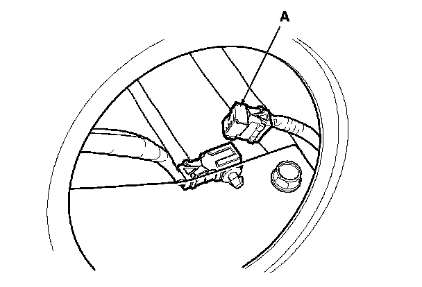 2. Disconnect the fuel subharness 6P connector (A) (this prevents the tank from supplying fuel to the system).